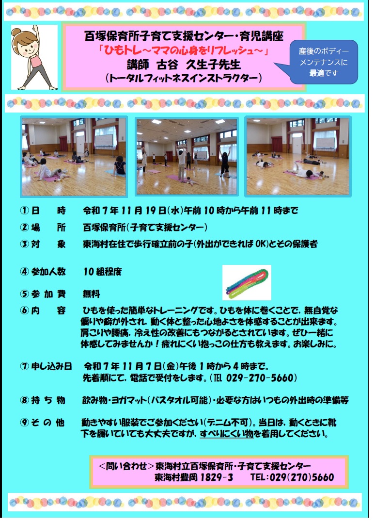 百塚保育所子育て支援センターから「11月の予定表」「11月の育児講座」についてお知らせします。興味のある方はぜひ遊びにいらしてください♪