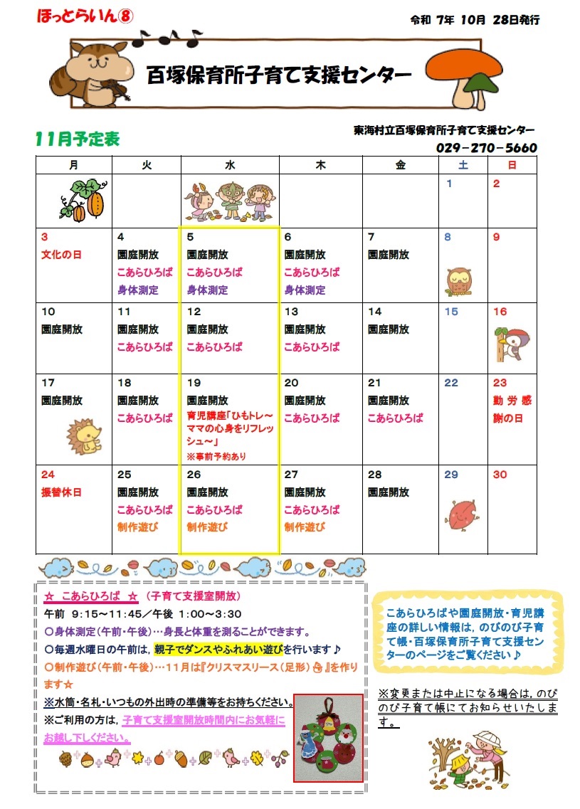 百塚保育所・子育て支援センター「11月のお知らせ」
