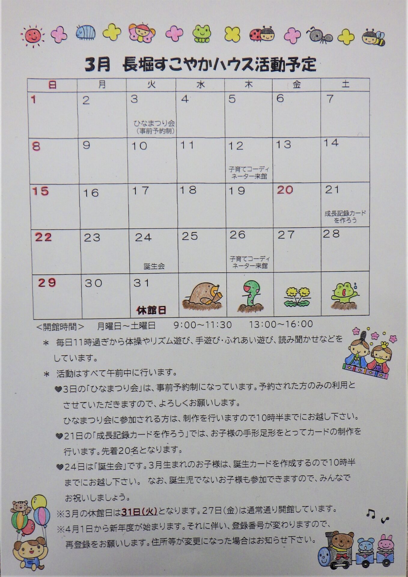 長堀すこやかハウス 3月の予定