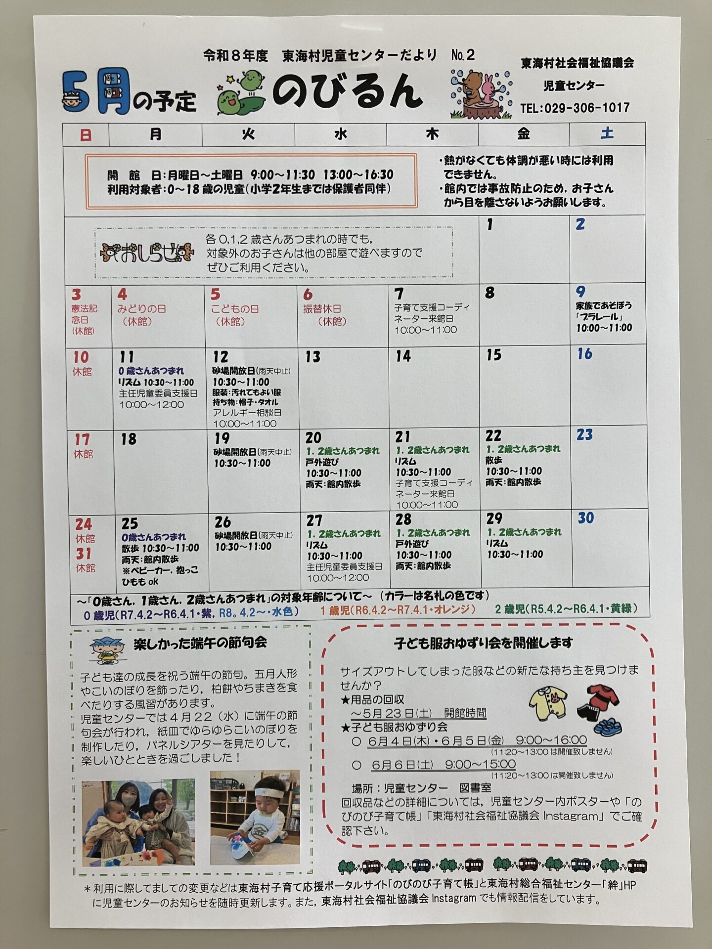 詳細は児童センターチラシや「のびるん5月号」をご覧ください。
