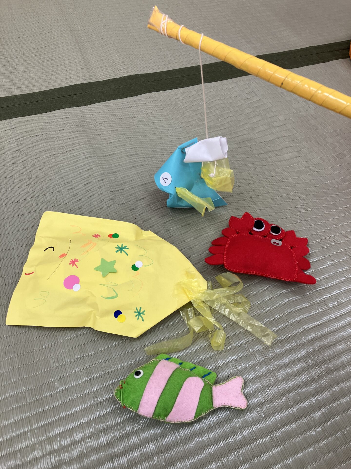 おさかなを制作し,いろいろな魚がいるプールで「さかなつり」を楽しみましょう