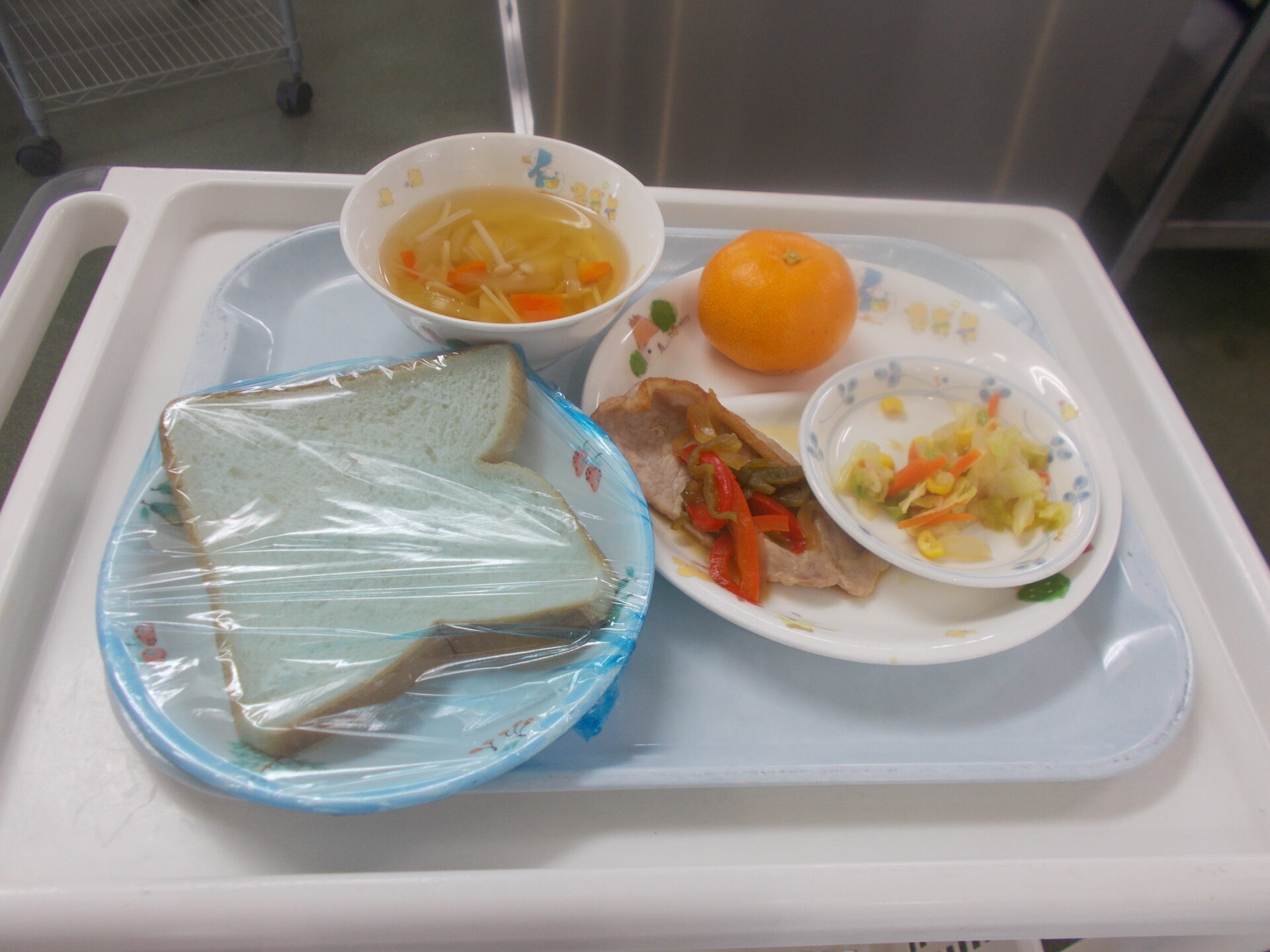 食パン ポークソテー キャベツサラダ じゃがいものスープ みかん |