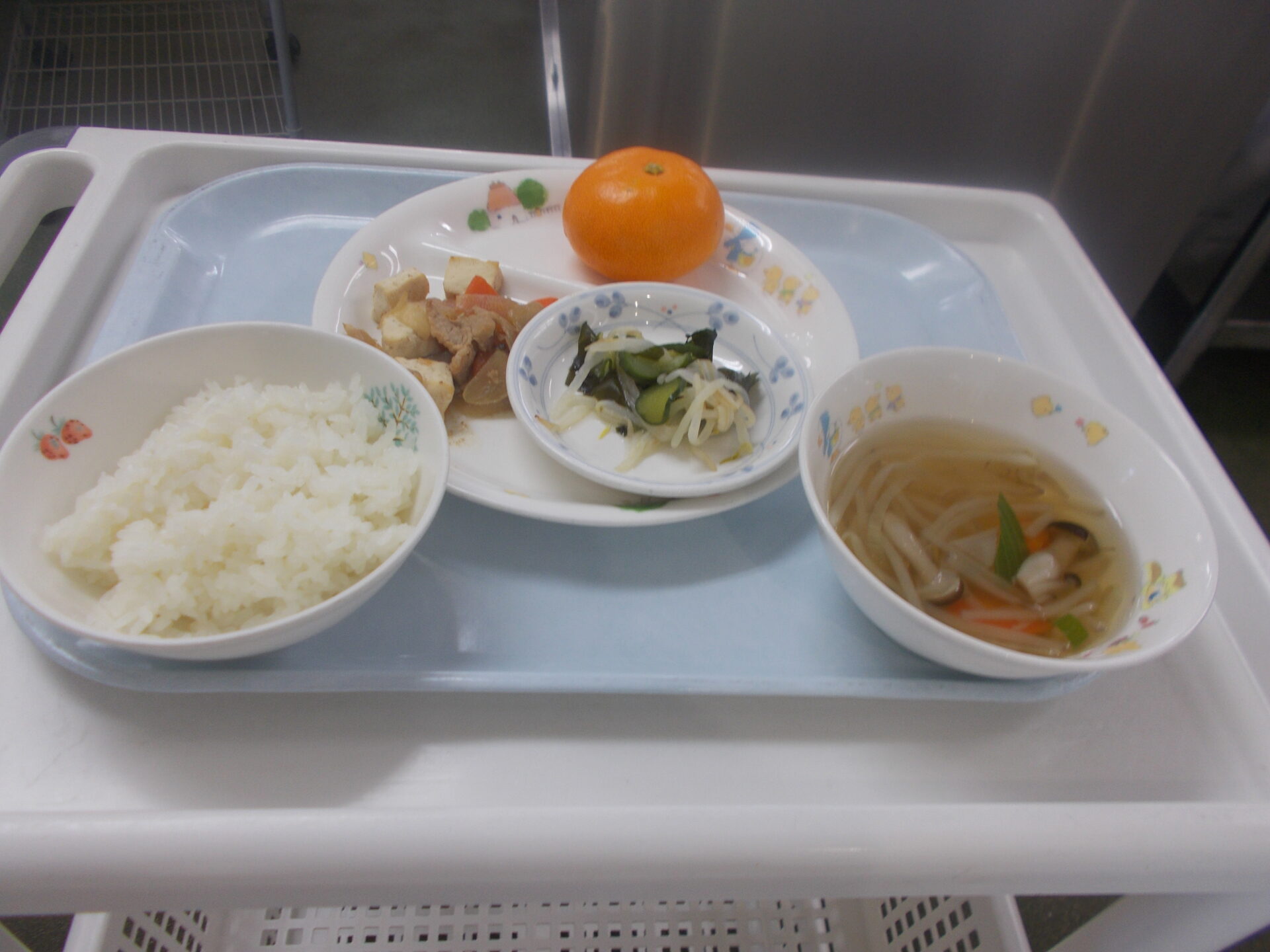 ごはん 肉豆腐 きゅうりとわかめの酢の物 もやしのスープ みかん |
