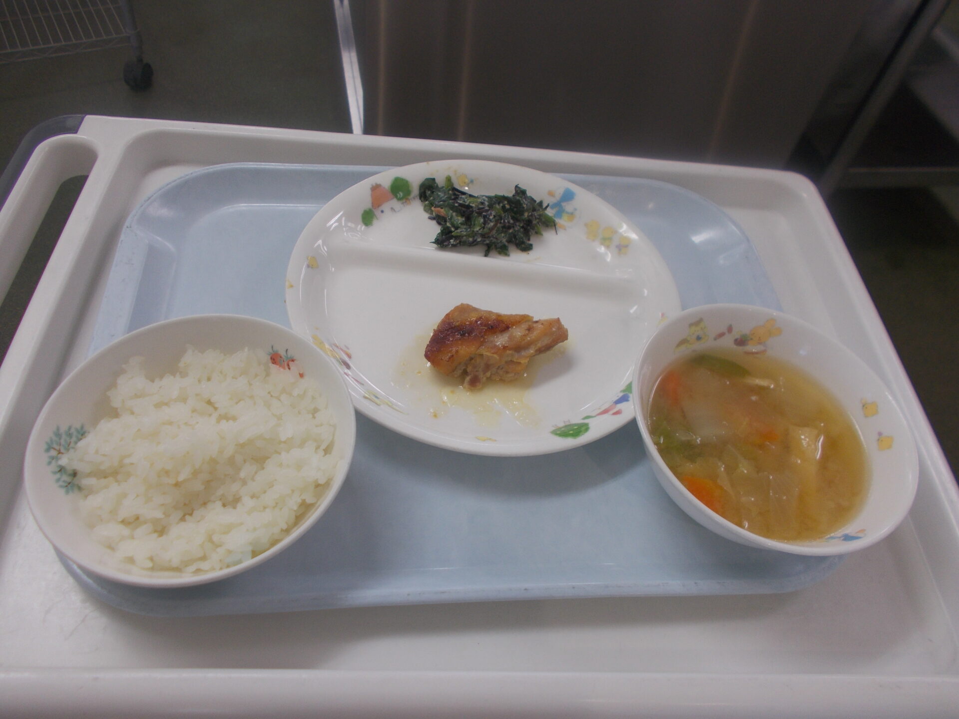 ごはん 鶏肉のねぎみそ焼き ほうれん草の白和え 白菜のみそ汁 |