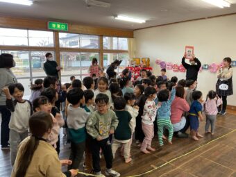 この日はみんなで集まってひな祭りの歌をうたったり,ひな祭りの由来を聞いたりしました。興味深そうに話を聞いていた子どもたちです。その後はひな祭りに関するクイズを行いました。「全部正解だった!」「私も!」などと喜び合う姿がありました。 各クラスではひな祭り製作を行い,それぞれかわいいおひな様を作っていました。日本の伝統文化に触れ,春を感じる行事となりました。 |