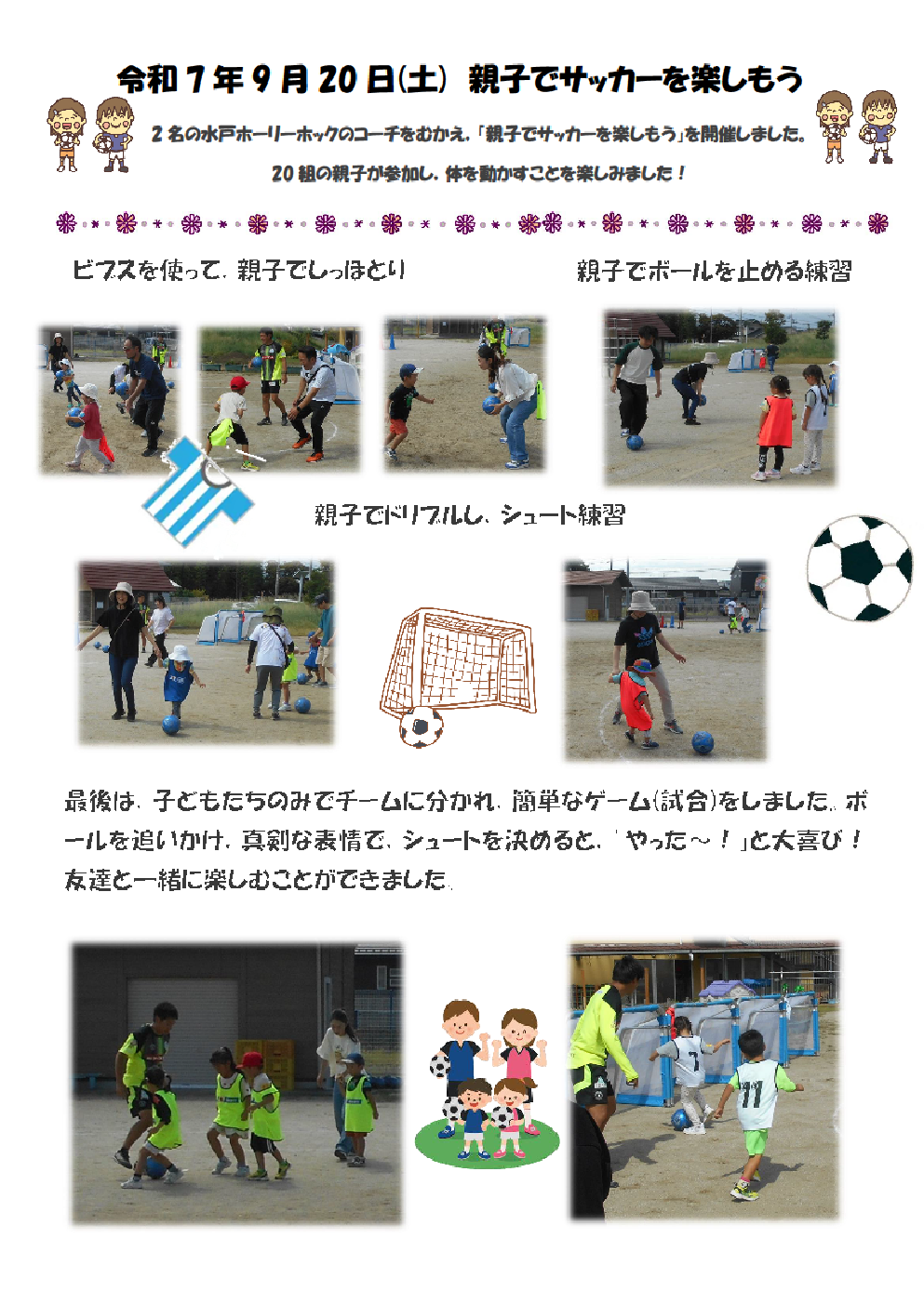 期日:令和7年9月20日(土) 場所:とうかい村松宿こども園 園庭(雨天・・・ホール) 対象: 村内在住の3歳から就学前のお子さんとその保護者(夫婦での参加可) 持ち物:飲み物,タオルなど ※動きやすい服装でお越しください。 |