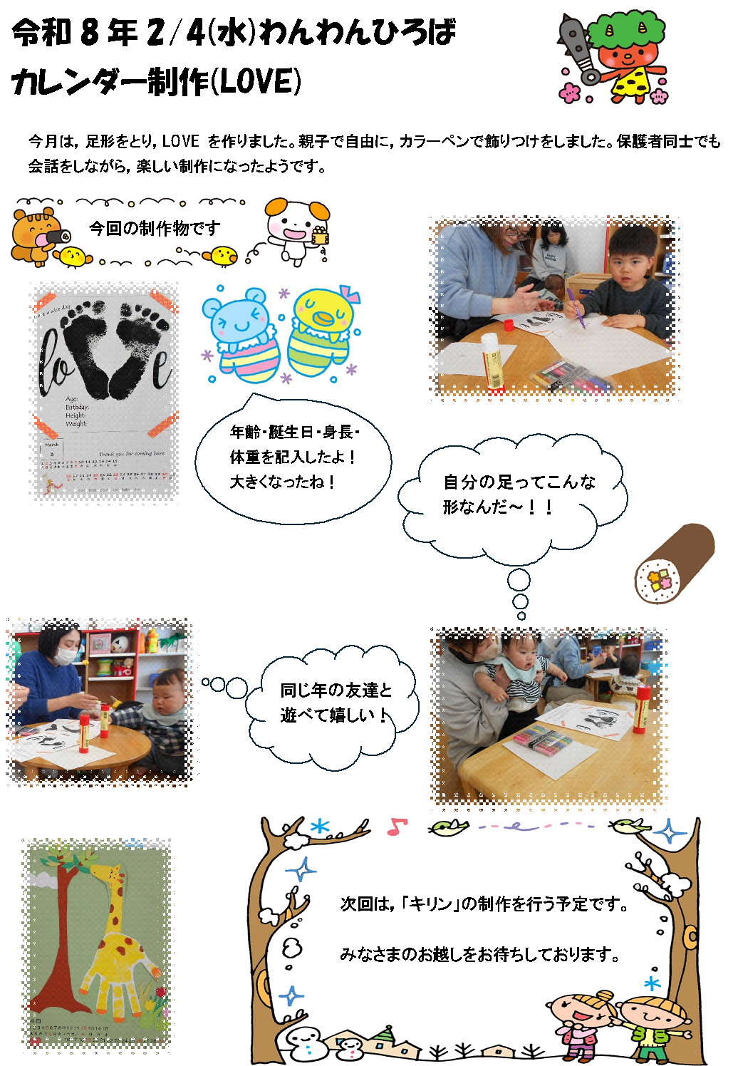 | わんわん広場では、不定期でイベントも行っております。親子で楽しめるイベントを用意していますので,たくさんの皆さまのご参加をお待ちしています。詳細などは随時お知らせしていきますので,のびのび子育て帳をご覧ください。 | ||||||||||