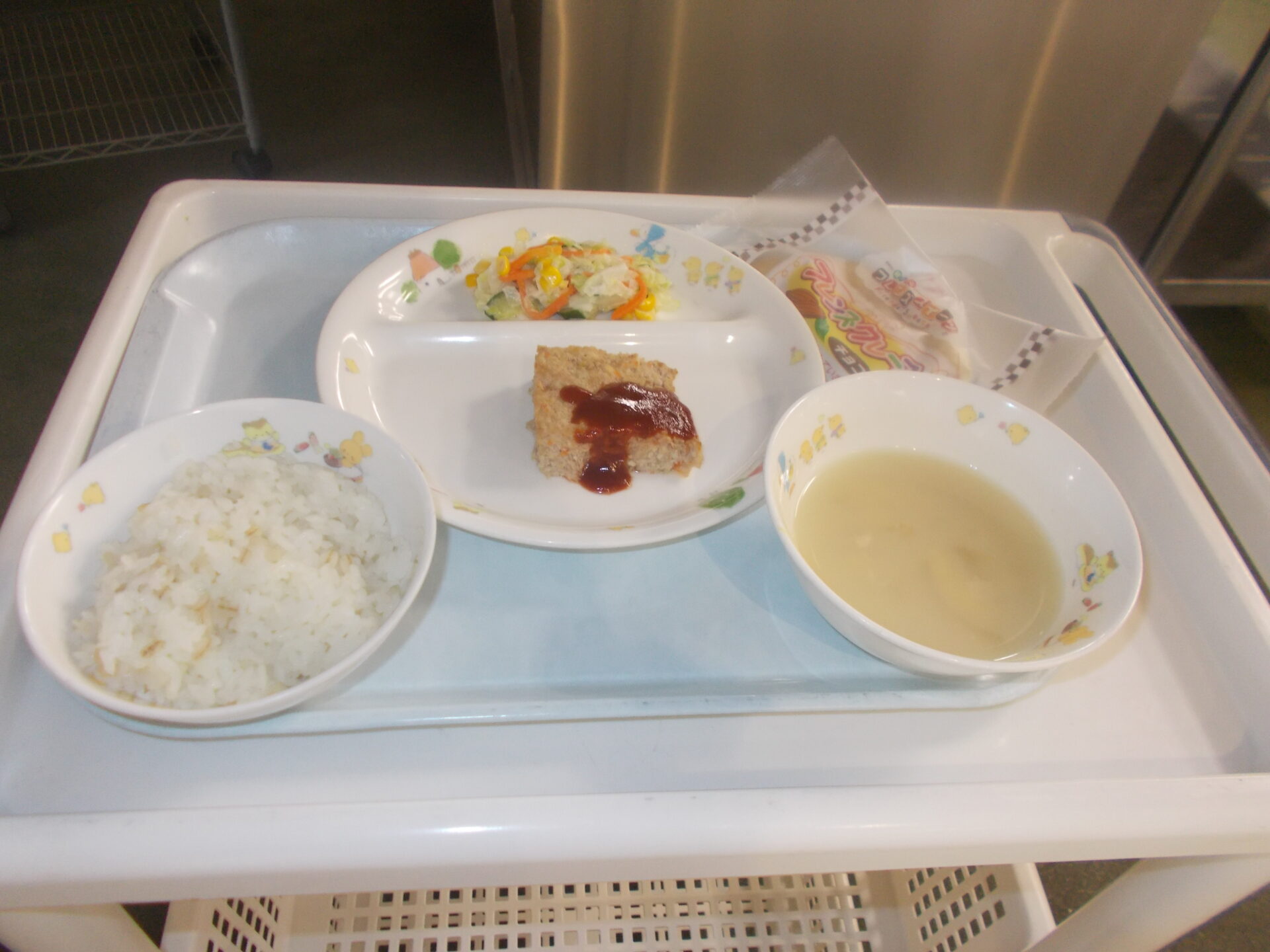 麦ごはん ミートローフ コールスローサラダ コーンスープ クレープ
