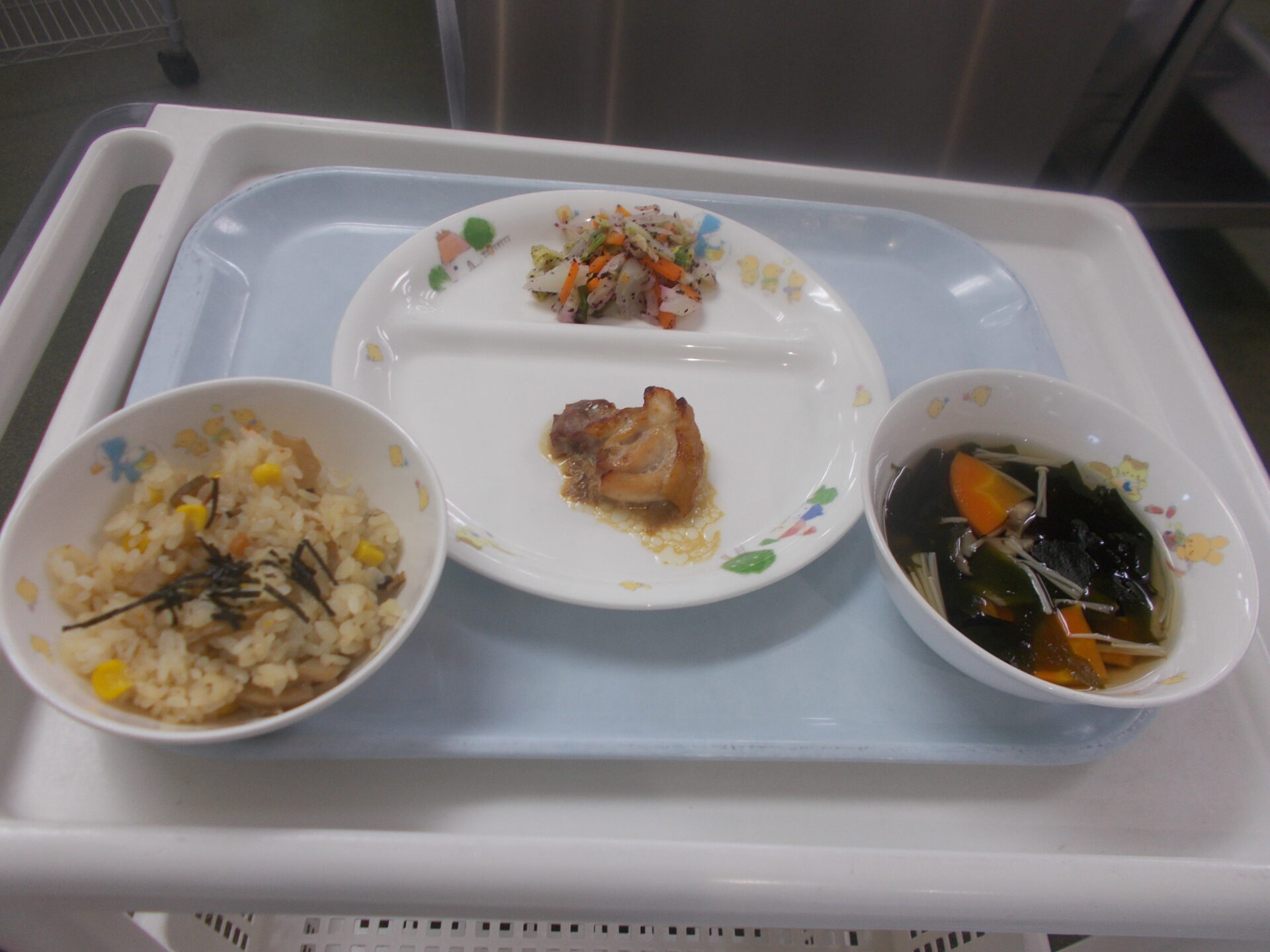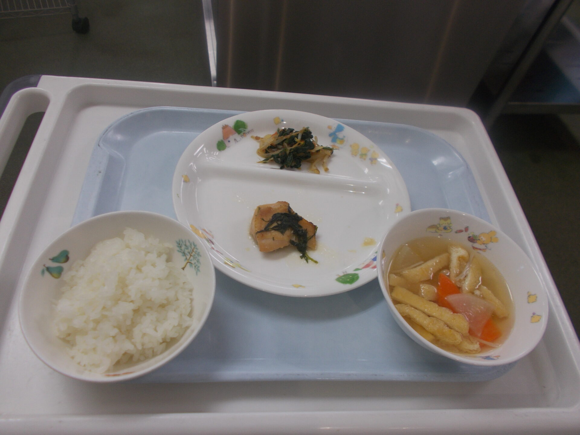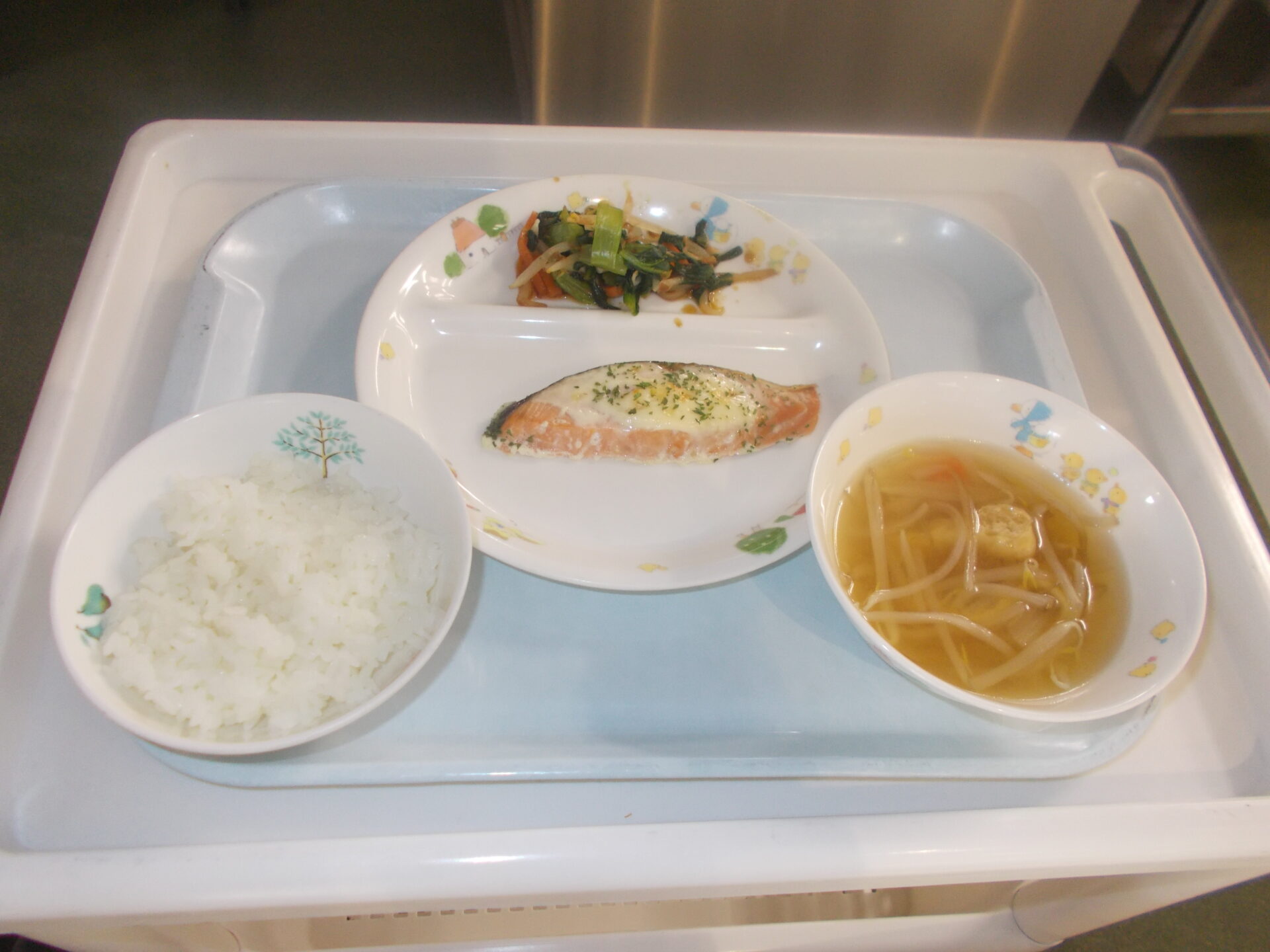 ごはん 鮭のマヨネーズ焼き 小松菜のおかか和え もやしのみそ汁 |