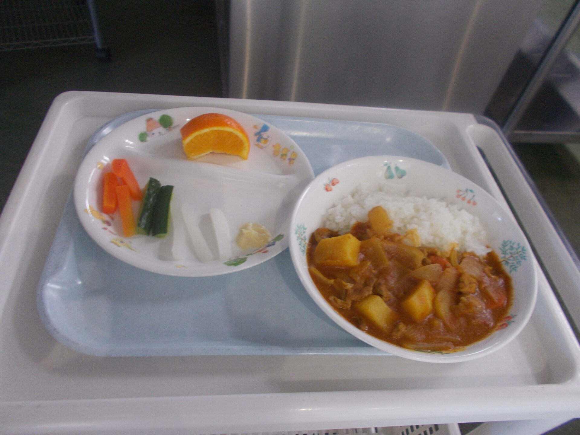 ごはん ポークカレー 野菜スティック いよかん