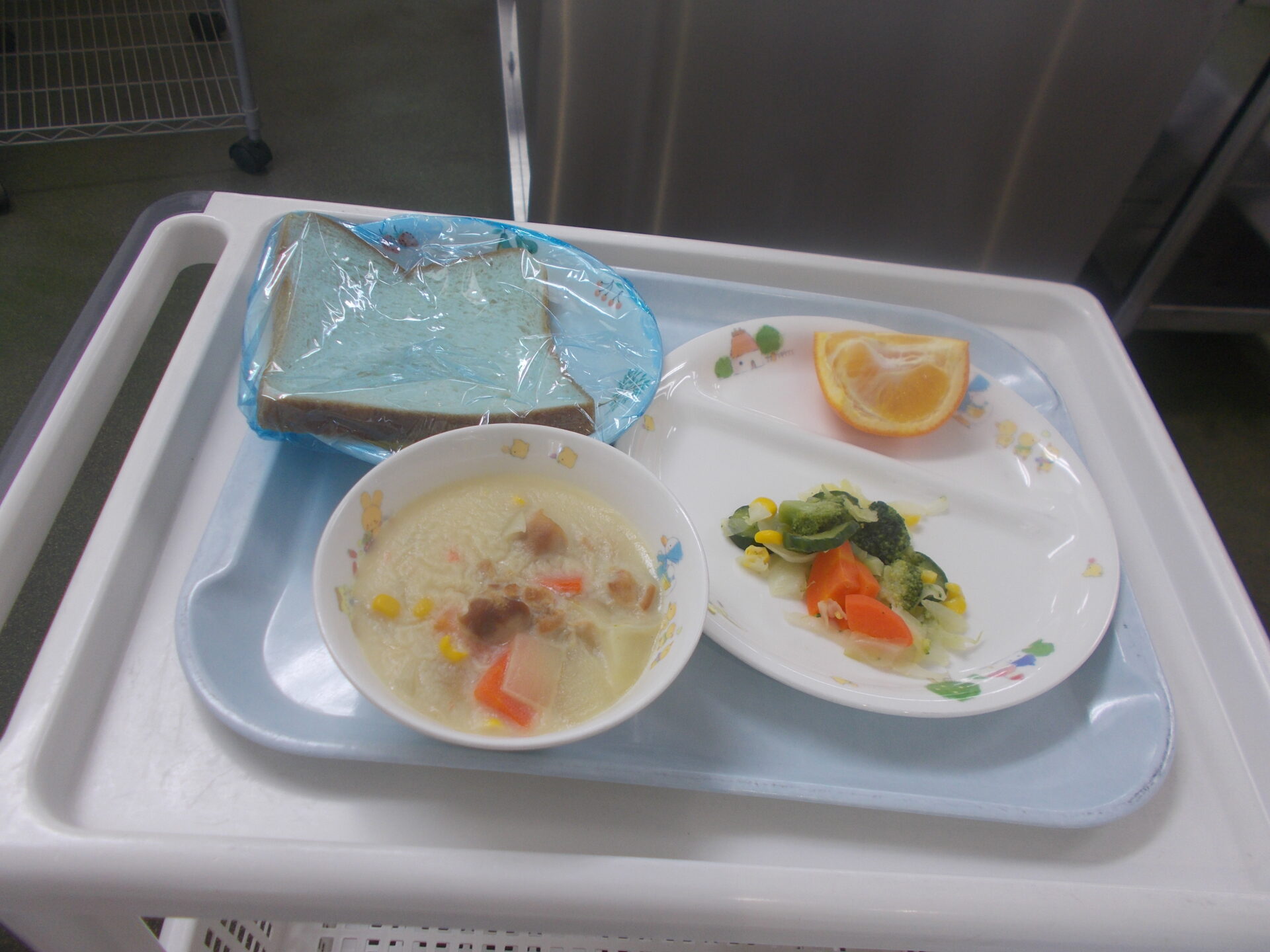 食パン クリームシチュー ブロッコリーサラダ いよかん