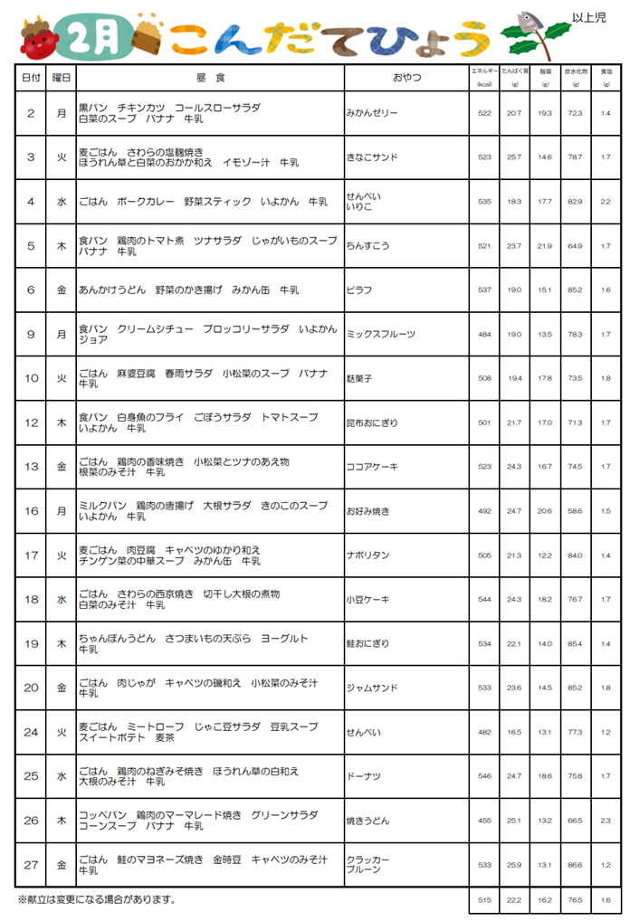 ☆2月2日の給食献立